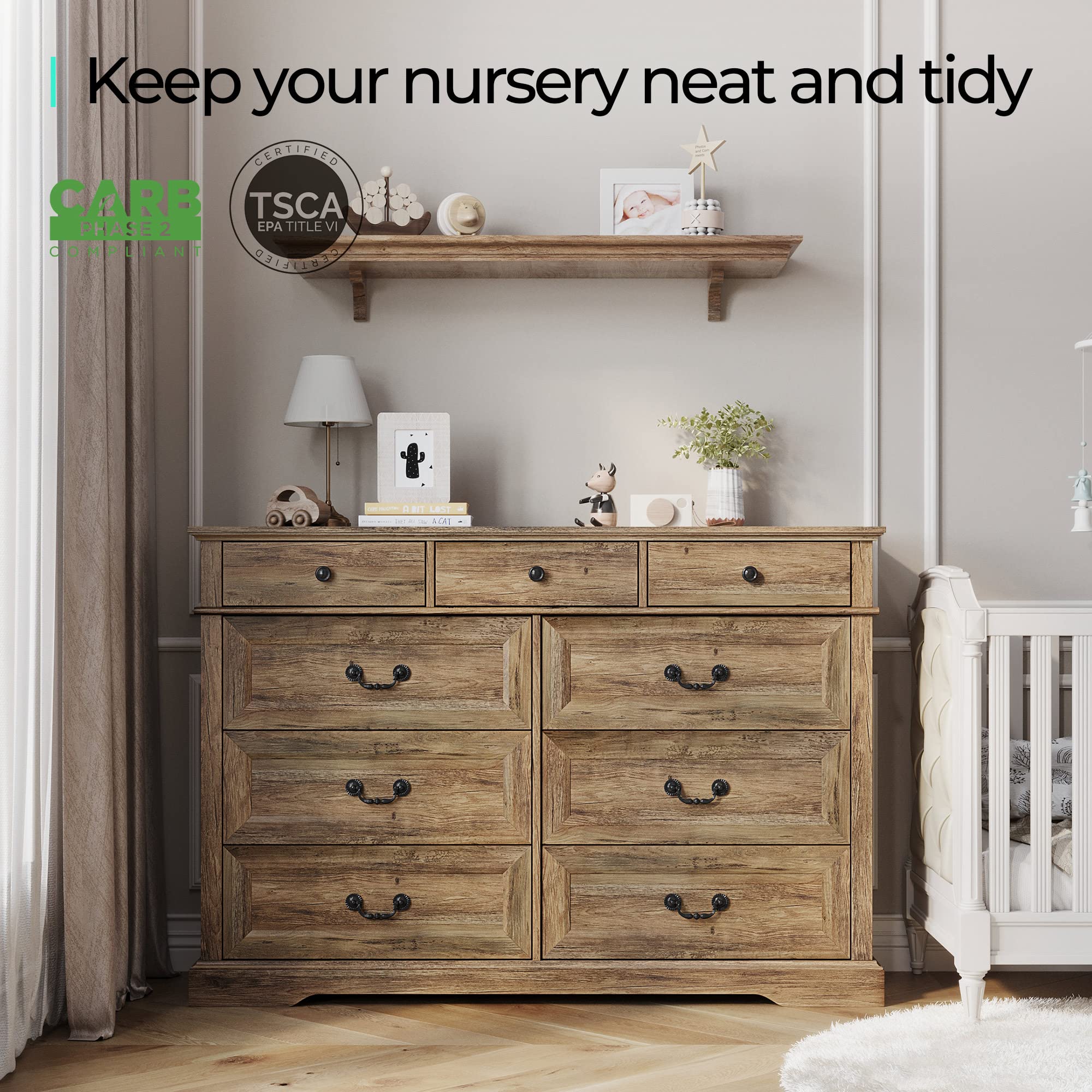 Amazon Com Linsy Home Dresser For Bedroom 9 Drawer Long Dresser With Antique Handles Wood Chest Of Drawers For Living Room Entryway And Hallway Rustic Brown Home Kitchen
